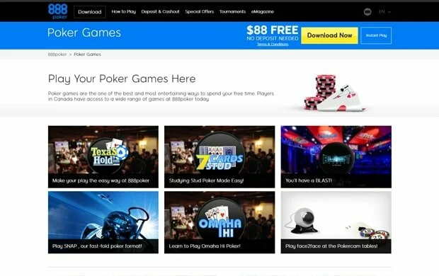 The games offered at 888 are not really on par with its competitors when it comes to classic poker games. They do, however, offer some unique variations of these games that can be a breath of fresh air to anyone who is growing tired of the classic games. Below is a list of the poker games 888 has available.