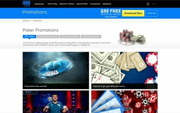 As a whole, the promotions for 888 poker are pretty weak. We will look at each of them in depth and see what they have to offer.