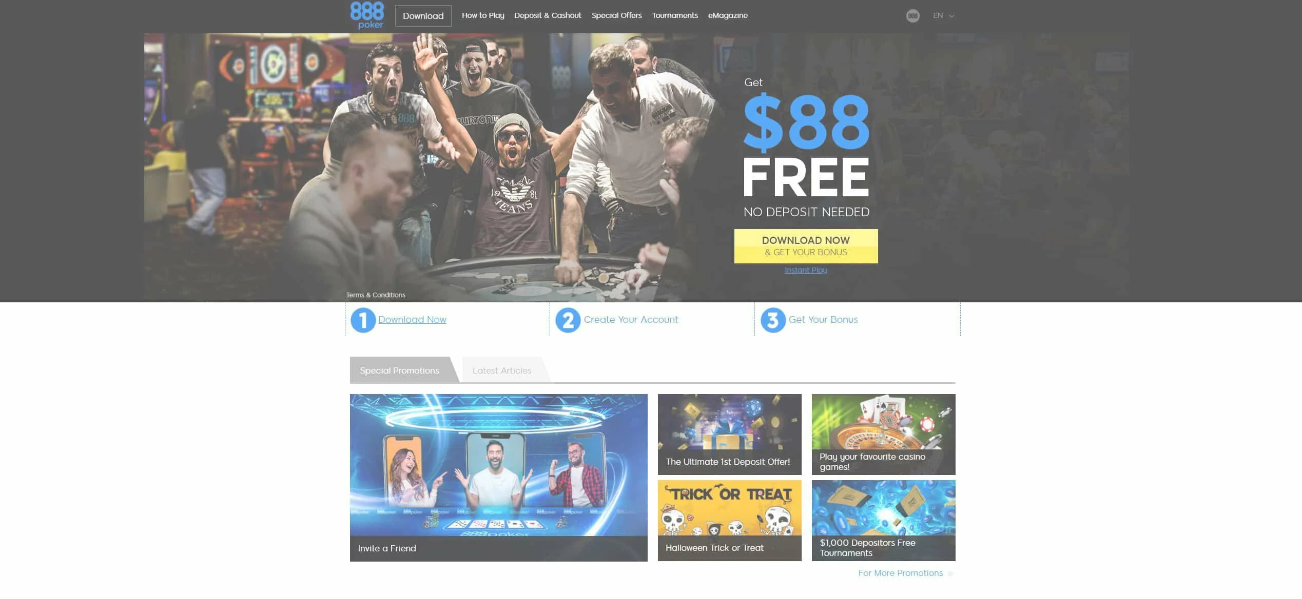 The first and most advertised promotion is the $88 free bonus which claims there is no deposit needed. As we expected, there are some serious conditions that need to be met for this to happen. They do give us 2$ in cash and 6$ in tournament credits right off the bat without playing anything, so that is definitely a plus for beginning players.