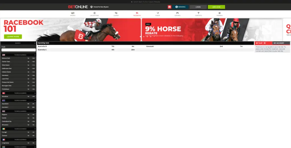 There’s a green and white “Join Now” button in the upper right-hand corner of BetOnline’s homepage. Click this button to get started!
