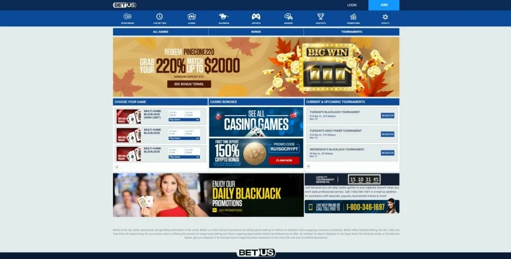 If you’re looking to play poker, blackjack, or any other of your favorite casino games at BetUS, you should take note of their advantageous casino welcome bonus. BetUS is giving new casino players a 150% bonus up to $3,000 on your initial deposit!