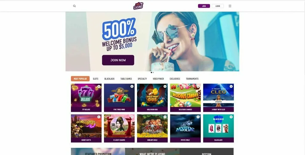 New depositors can take their pick from two different options for the casino’s Super Play Welcome Bonus. This is the first option – a match bonus worth up to $5,000 at a match rate of 500%. This bonus requires a playthrough of 35x.