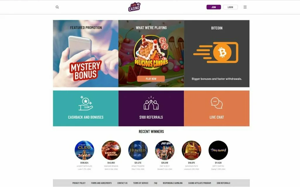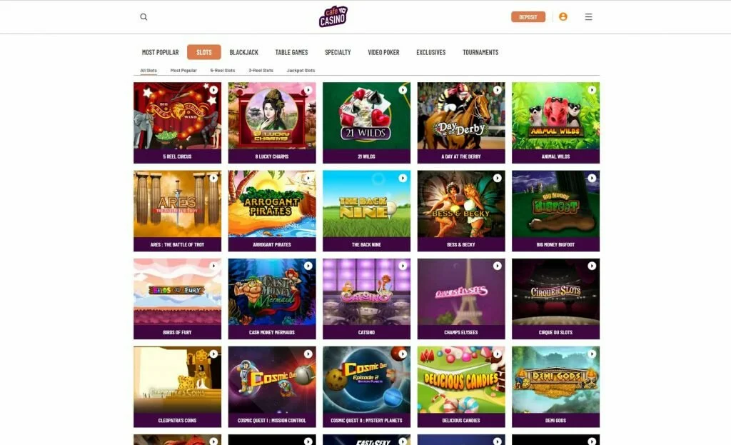 Below, you’ll find more detailed coverage of each of Café Casino’s five game categories: