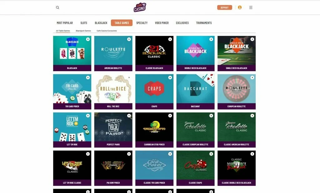 Café Casino hosts nine games in its Table Games category. They are: