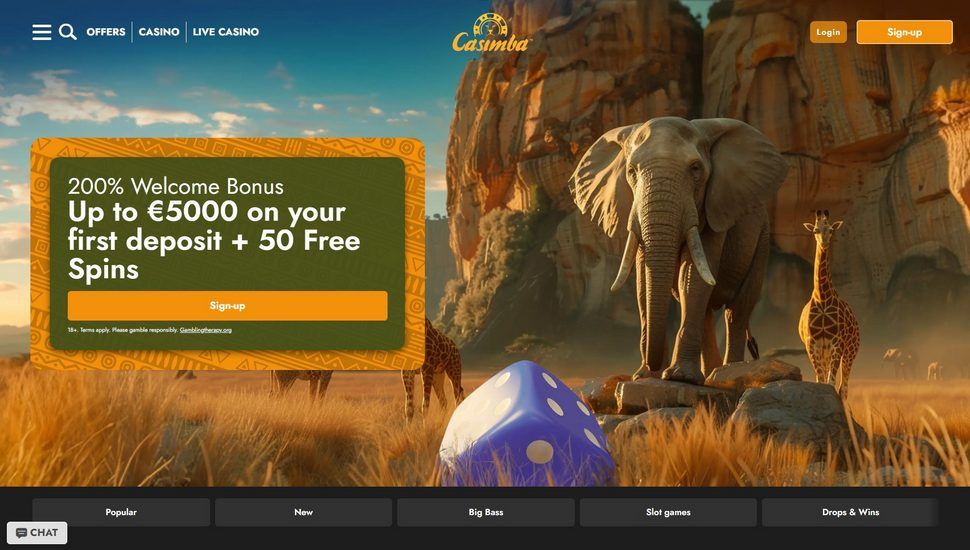 Casimba offers a larger-than-life welcome bonus, which it makes you aware of the minute you land on the site. You literally can’t miss the offer, as it’s up in lights against a video slider of spinning reels, cards being dealt, and Gonzo from the popular slot game Gonzo’s Quest.