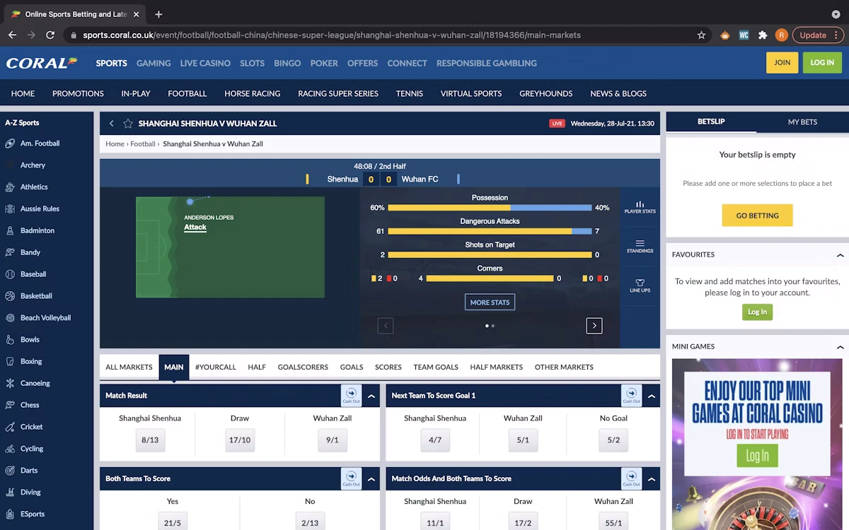 Thirty-Two Markets Are Available For Wagers in Coral’s Sportsbook: