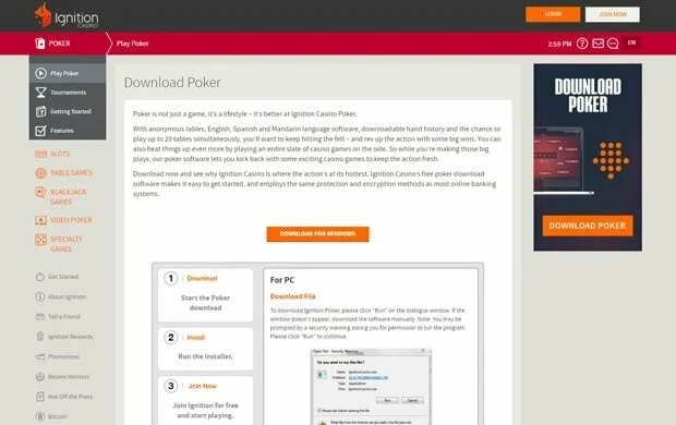 Ignition Poker focuses on the United States market and prefers BitCoin as a deposit and withdrawal option.