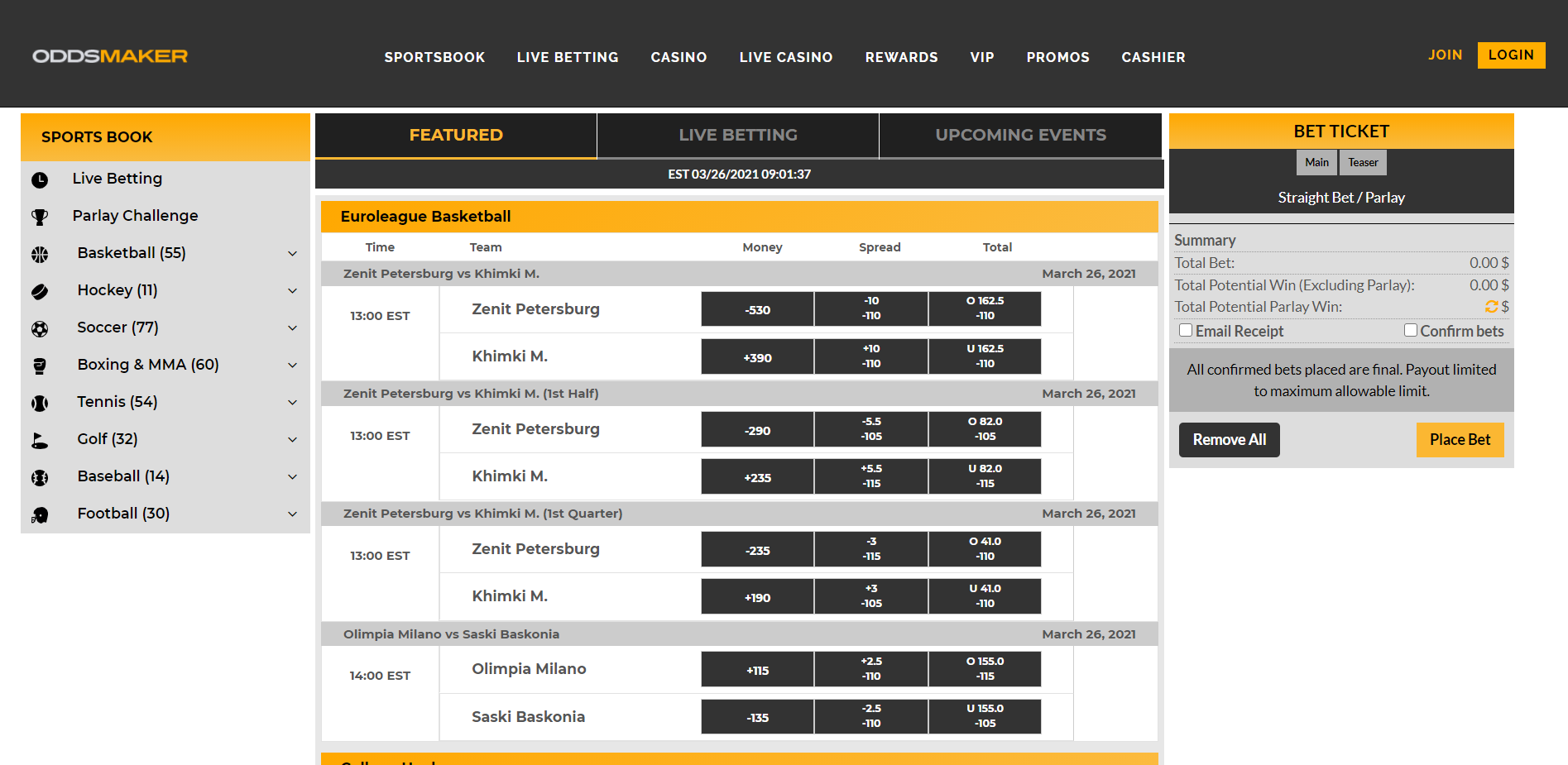 And now for an overview of each of the categories of gambling available at Oddsmaker.ag.