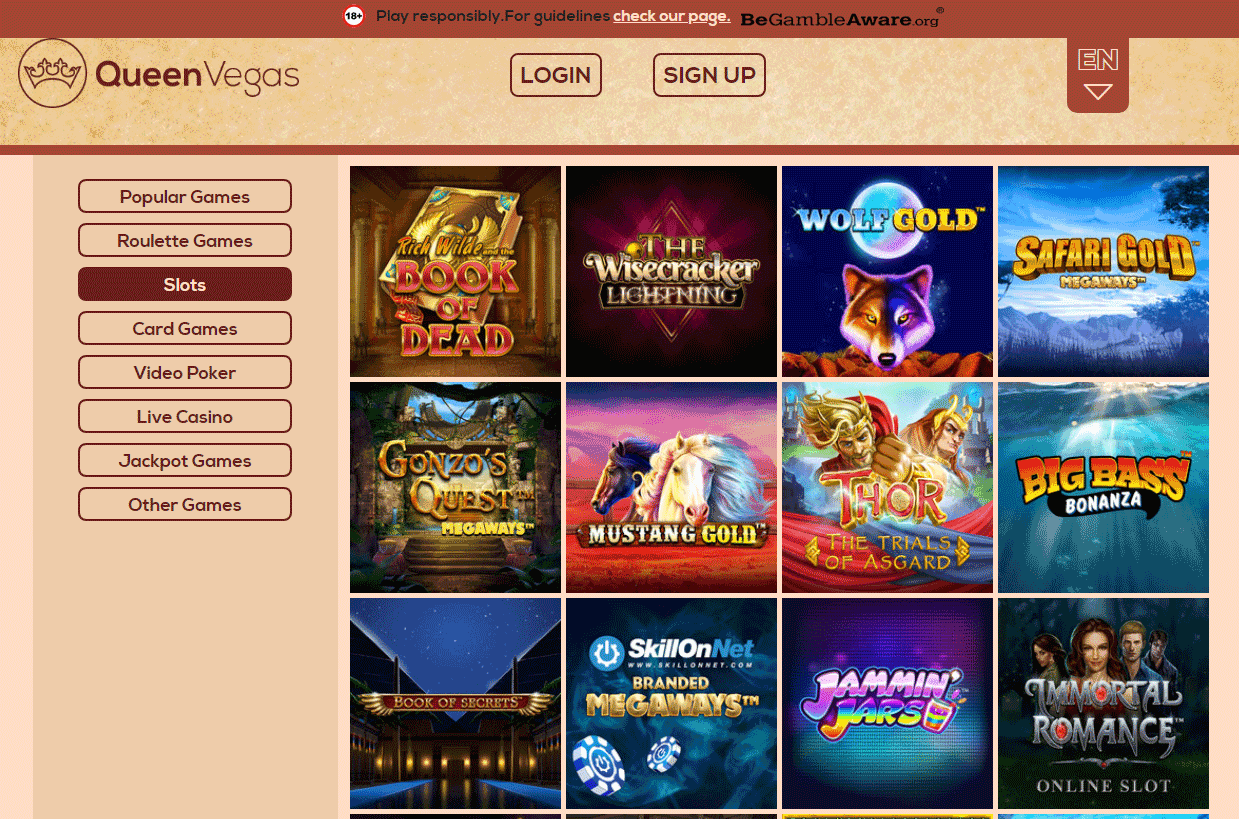 For those of you that love online slots, you’re in for a treat at Queen Vegas Casino. There, I found over 630 different online slot machine gaming options. This is a sizeable collection that is higher than what I see from average online casinos. What’s incredible about this extensive collection is that it means slot players won’t have any shortage of options when playing at this online casino.