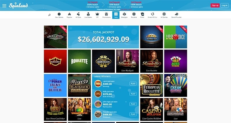 Now, if you are a lover of blackjack or roulette, then you will find some great options here at Spinland, but if you are looking for other games like Pai Gow or baccarat, then you are out of luck.