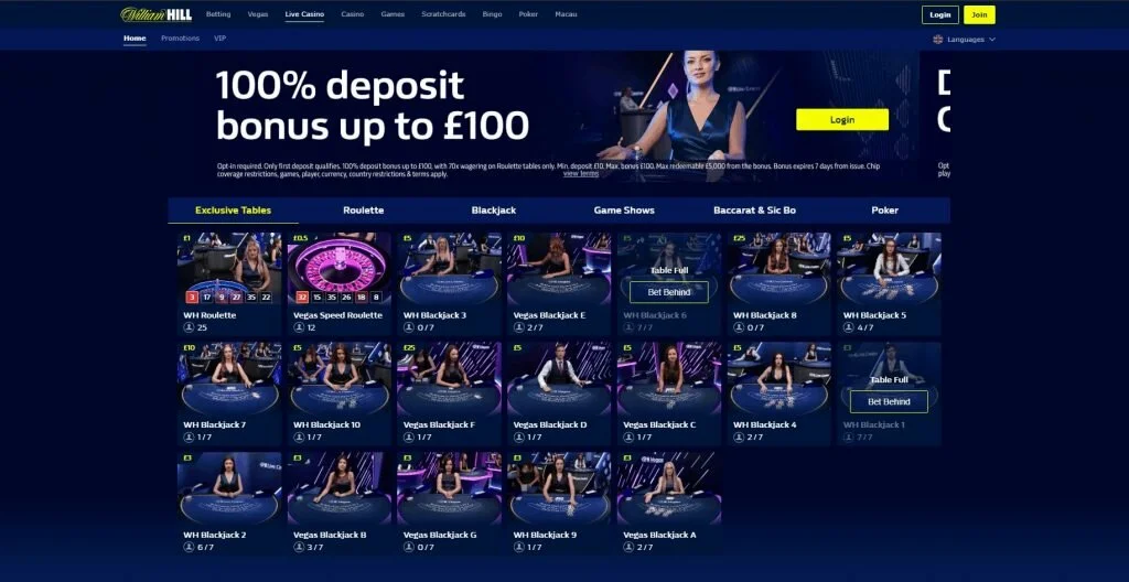 Slots is the section where the site hosts its online slot titles. Playtech, the design firm that produced all these titles, has a huge collection of slot games to offer its licensees. It looks like William Hill licensed every available title – the slot collection is huge.